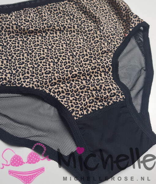 Gedragen hoge panterprint slip met doorschijnende achterkant.