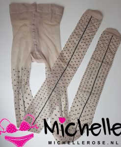 Gedragen panty met naad en stipjes.
