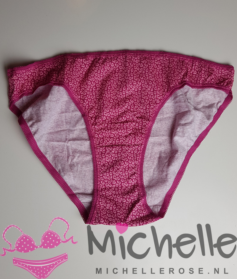 Gedragen slipje roze met print.